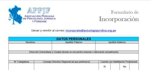 Adjuntar el formulario con sus datos (Word o PDF), abonar por cuota trimestral la cantidad S/30.00 (S/10.00 cuota mensual), S/20.00 (trámite y evaluación administrativa) adjuntar voucher de abono (imágen o PDF), su CV (no documentado) y, una fotografía tamaño carnet (para fotosheck). Hay descuento del 20% por abono anual. Finalmente, enviar dichos documentos al E-mail que aparece a su derecha...